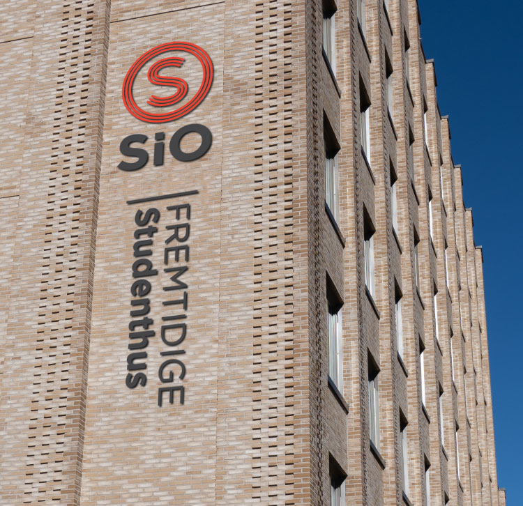 Nye bygg merkes med SiO-logo og navn på studentbyen/huset. Det samme gjelder bygg der vi skal skifte ut gamle skilt.